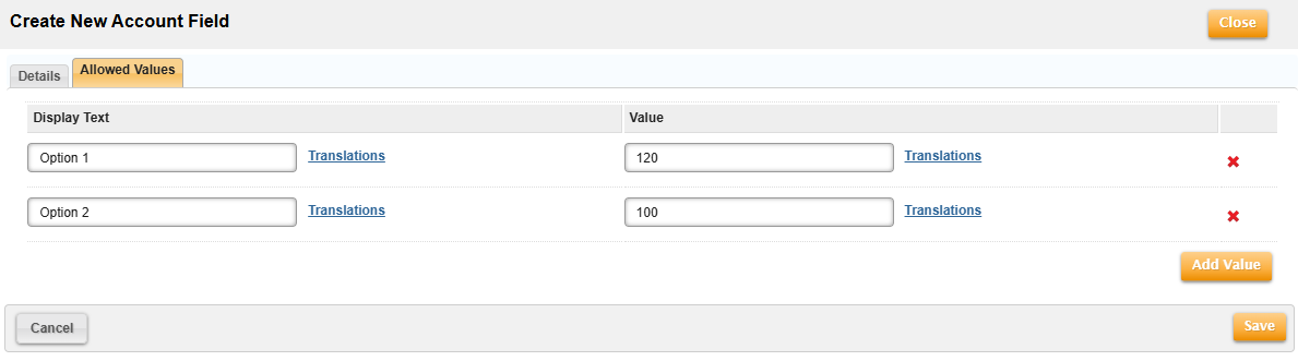 Account fields allow you to capture additional information about your customers based on your business needs and are available as text input fields, radio buttons, and selection drop-downs.